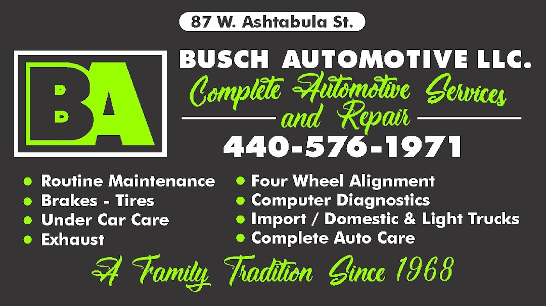 Busch Automotive LLC is located at 87 W Ashtabula St, Jefferson, OH 44047, this is a Auto repair shop that can help you get back on the road fast, they have one of the many auto repair shops in Ohio, USA listed under our car repair shops.