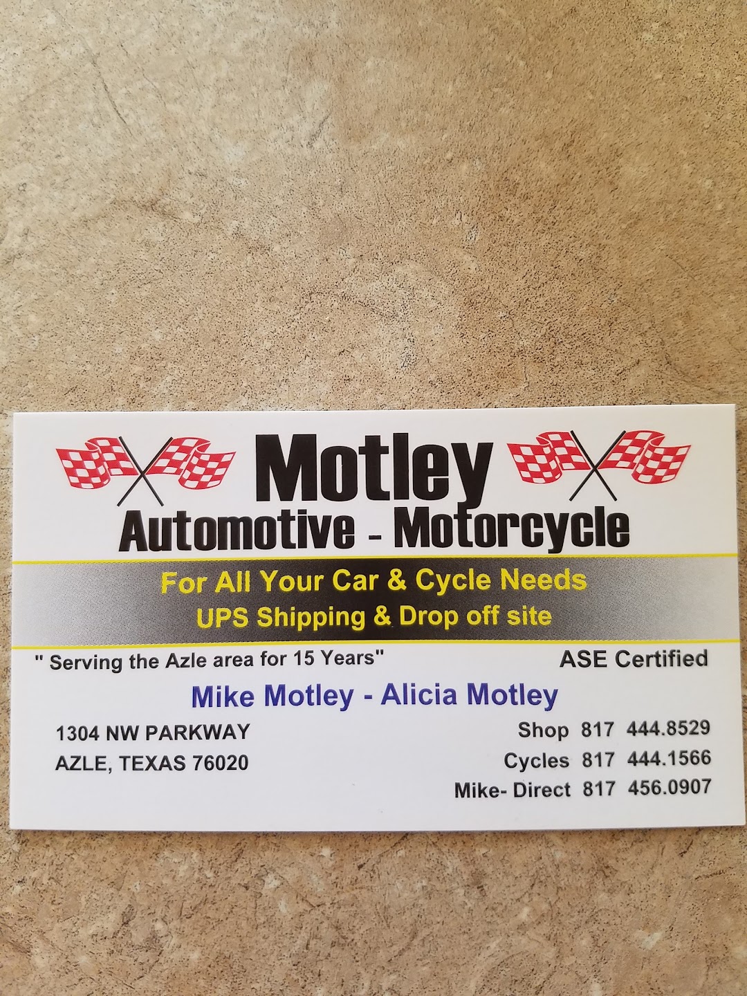 Motley Automotive is located at 1304 NW Pkwy St, Azle, TX 76020, this is a Auto repair shop that can help you get back on the road fast, they have one of the many auto repair shops in Texas, USA listed under our car repair shops.