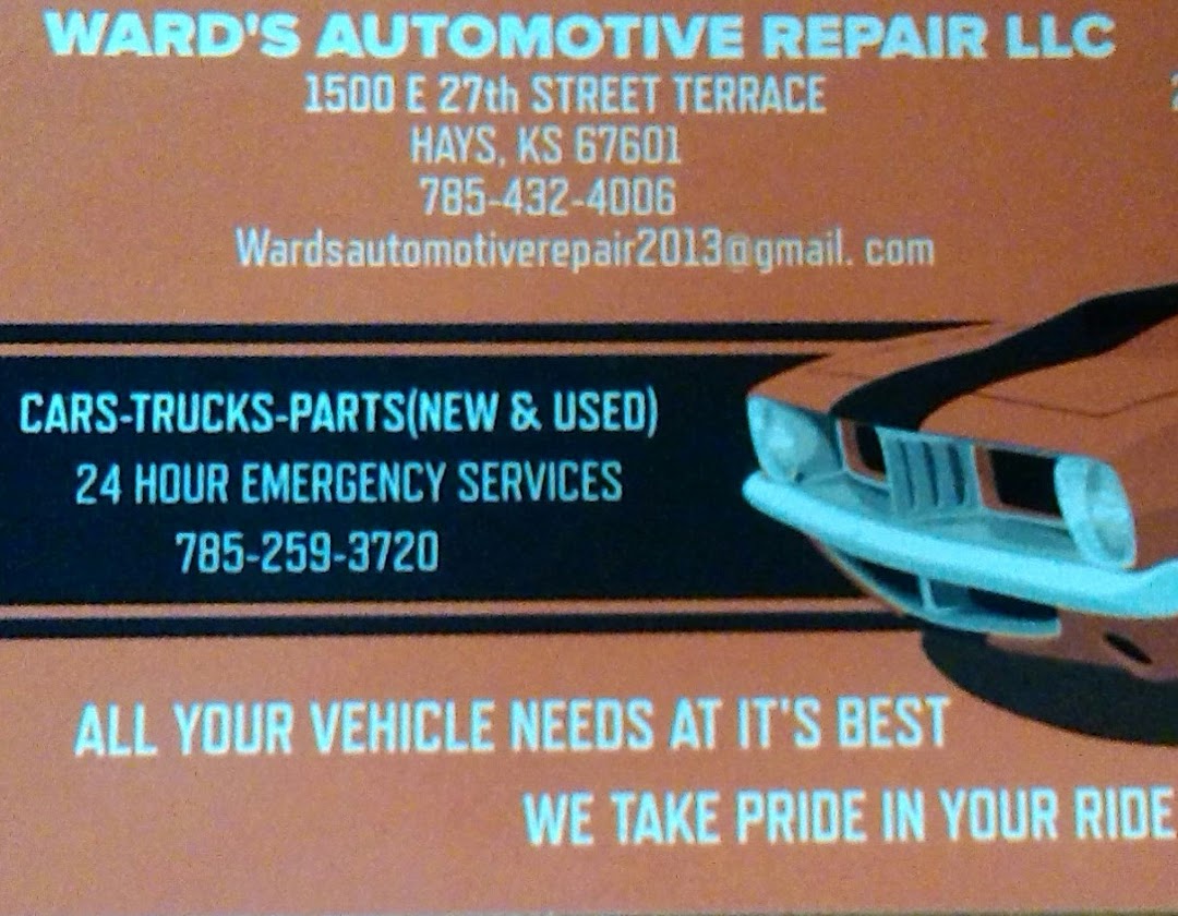 Ward’s Automotive Repair LLC is located at 1500 E 27th St Terrace, Hays, KS 67601, this is a Auto repair shop that can help you get back on the road fast, they have one of the many auto repair shops in Kansas, USA listed under our car repair shops.